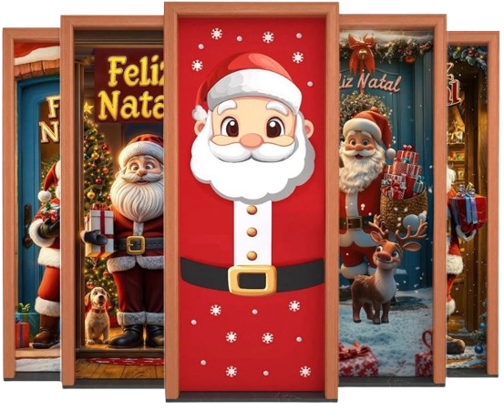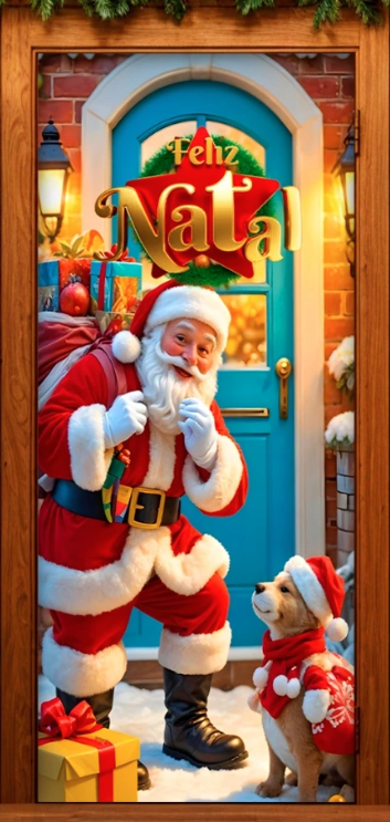 O bom velhinho chegou pra espalhar alegria! Noel Feliz transforma sua porta num convite pra sorrisos e espírito natalino.